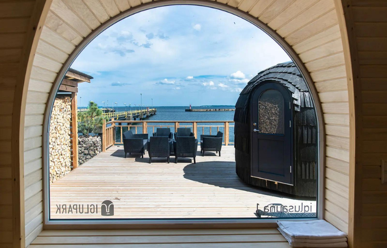 Igluparkin yleellisten saunatilojen lisäksi pääsette nauttimaan yksityisestä terassista meren äärellä, josta pääsette halutessanne pulahtamaan aaltoihin virkistäytymään.