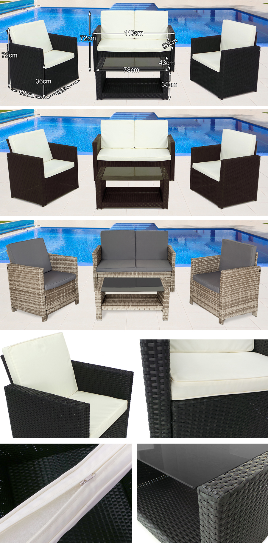 – säänkestävään puutarhakalusteryhmään kuuluu kaksi nojatuolia, yksi kahdenistuttava sohva sekä pöytä