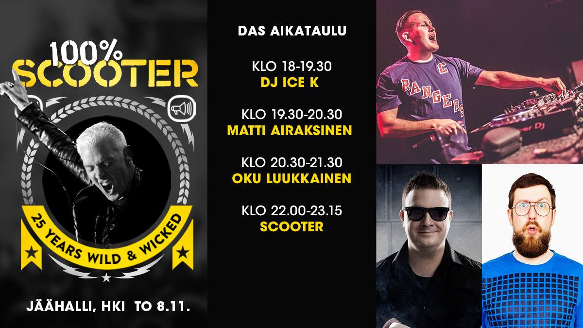 Scooter on aloittanut jo tänä syksynä erityisen juhlavuoden, joka vie yhtyeen maailmankiertueelle ja tuo myös Suomeen marraskuussa, julkaisihan tämä saksalainen elektronisen tanssimusiikin uranuurtaja ensimmäisen Vallée De Larmes – ja megasuosion saaneen Hyper Hyper -singlensä vuonna 1994. On siis aika polkaista käyntiin Scooterin 25-vuotisjuhlakiertue! Luvassa on ennennäkemätön ilta, jossa käydään läpi yhtyeen megasuosion räjäyttäneet hitit sekä päästetään valloilleen koko 25 vuotta jo kantanut energia, josta Scooter on tullut tunnetuksi.